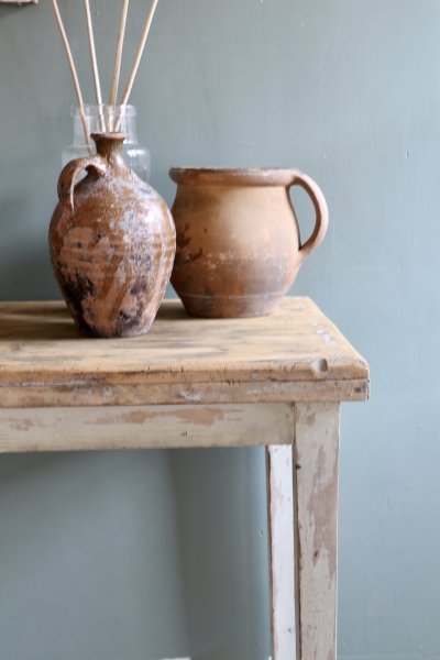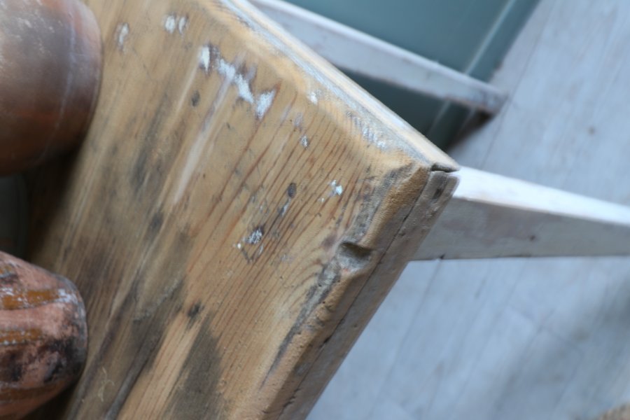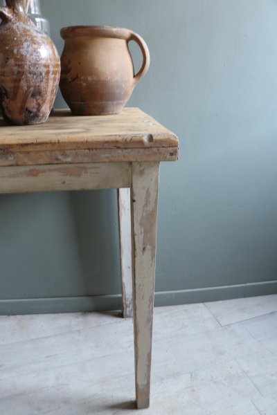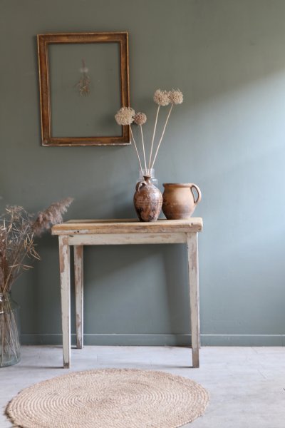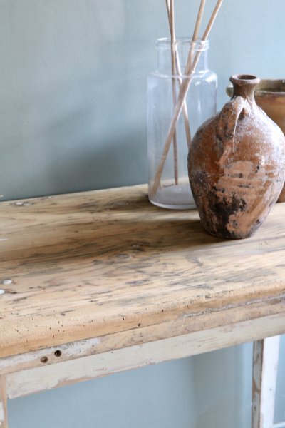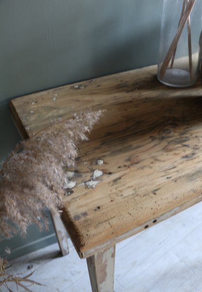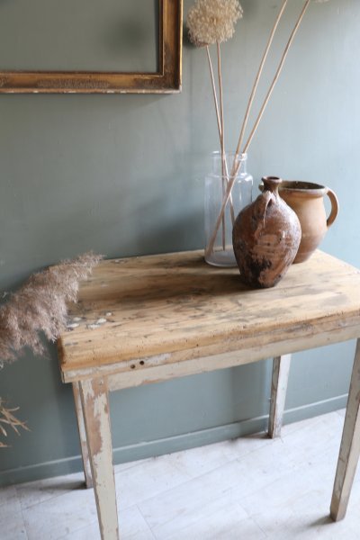 Petite console en bois patine d’origine le plateau a été poncé mais comporte des traces et il a été traité contre les vrillettes et vernis