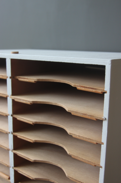 Trieur administratif ayant été peint en blanc Sédiment. D’autres formes et couleurs seront présentés également à la vente