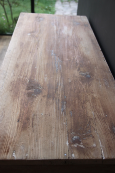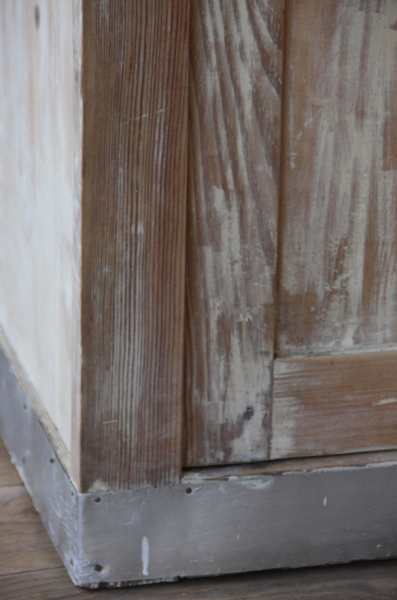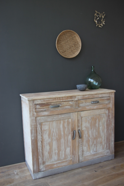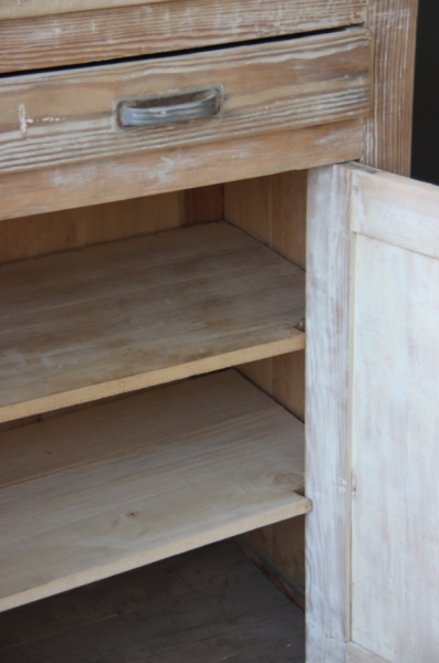 Buffet de cuisine des années 50 ayant été décapé entièrement. Son piétement est couvert d’une plaque en zinc ancienne et ses poignées sont très vintage... ce meuble pourra être peint en coloris chèvrefeuille à l’extérieur sur demande (+50€)